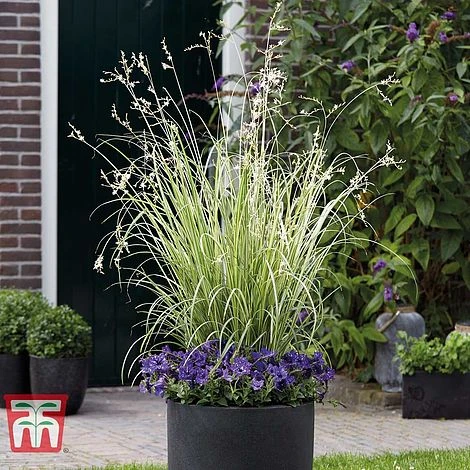 This elegant grass-like perennial forms a dense clump of slender, variegated foliage that shoot upwards before arching gracefully at the tips. Unlike its better known, house plant relative – the Spider Plant, Chlorophytum saundersiae ‘Starlight’ is hardy to -5C (41F) making it suitable for a sheltered spot outdoors. Throughout summer it produces starry, white flowers that sparkle at the tips of its long stems. Simply beautiful in patio containers, and fabulous in mixed borders too, where it provides excellent structure and texture. Height: 100cm (39″). Spread: 45cm (18″).