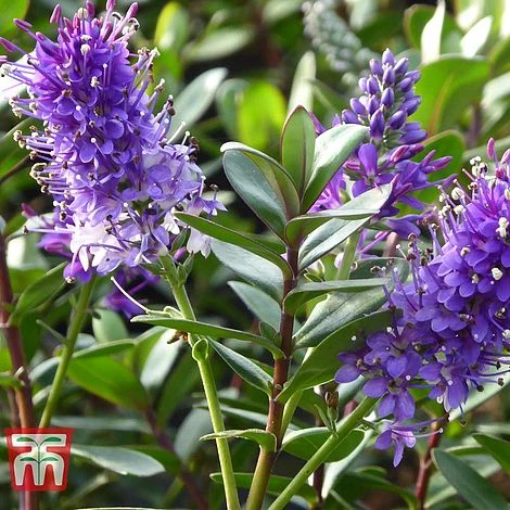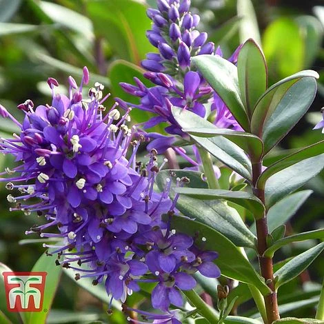 A well-known cultivar introduced This compact evergreen shrub has a neat, rounded habit that makes it ideal for bringing year round colour to borders. The dark green foliage is edged with a slender purple margin. Over the winter months the margin broadens, giving the entire plant a purple tint. Throughout summer, Hebe ‘Autumn Glory’ produces a pretty display of short, rather chubby violet purple flowers, which are loved by pollinating insects. Height and spread: 60cm (24″).