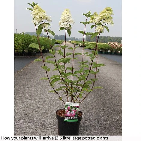 Following in the success of the popular Hydrangea ‘Vanille Fraise’, this spectacular variety is equally impressive. The impressive conical blooms emerge ivory and gradually colour to deep strawberry pink giving a mouth-watering two tone effect. The plump flower heads are carried upon strong stems that won’t slump in wet weather. Hydrangea paniculata ‘Fraise Melba’ is extremely hardy and positively thrives in those tricky north facing positions where its flamboyant blooms and vibrant autumn colours will light up even the gloomiest corners. Height and spread: 120cm (48″).
