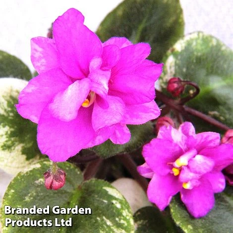 Saintpaulia ‘Ramblin’ Spots’ offers bright pink double blooms for most of the year. African Violets make great shade-tolerant houseplants, with exotic-looking flowers produced for most of the year in a wide array of vibrant shades, rising above thick, furry green leaves. Height and spread: 15-30cm (6-12in).
