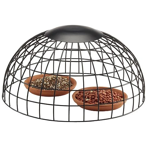 If you have pesky grey squirrels that are always eating the bird food, or flocks of pigeons crowding out smaller song birds, then this metal feeding haven is a simple and effective solution. It creates a barrier, with gaps in the wire large enough for small birds to get through, but not large birds and grey squirrels. The feeding haven can be placed on the ground, or on a large bird table.
